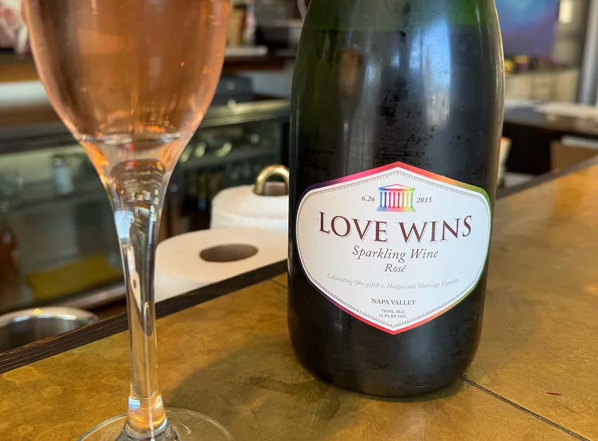The tasting kicked off with a bottle of sparkling rosé aptly named Love Wins. Made from Pinot Noir, this bubbly wine brings bright notes of cherry balanced with the warm aroma of toasted bread.